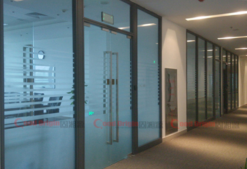 本案例中包含了单玻系列隔墙、系统组合系列隔墙以及双开玻璃电子控制大门。